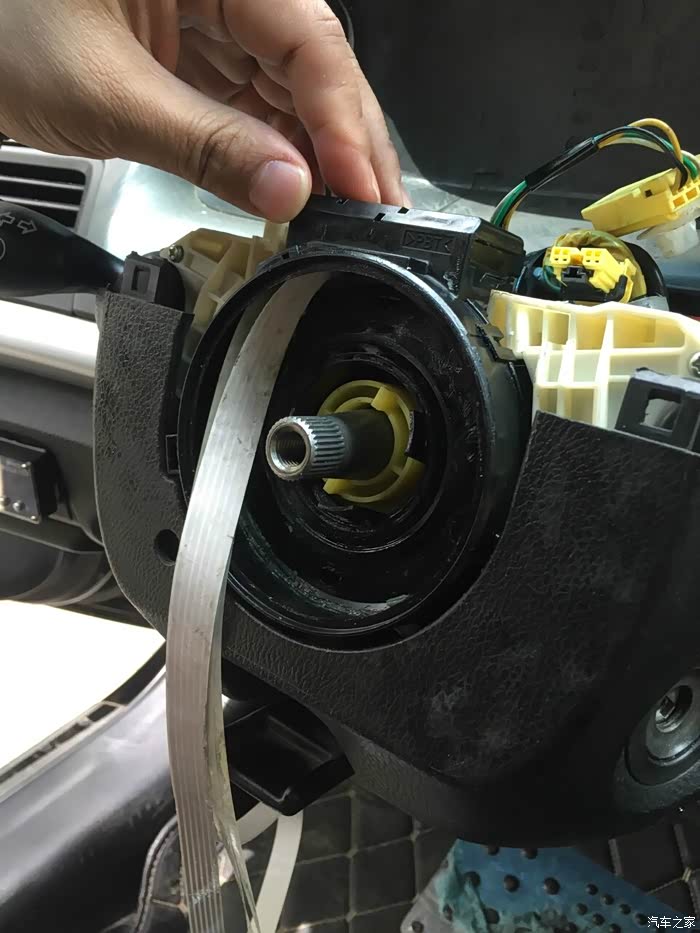 这个东西叫方向盘气囊油丝 切记 拆方向盘的时候不能拆开它 一旦拆开将无法还原 因为这个方向盘改装经历了太多 可以单独开一个帖子了 就不细说了