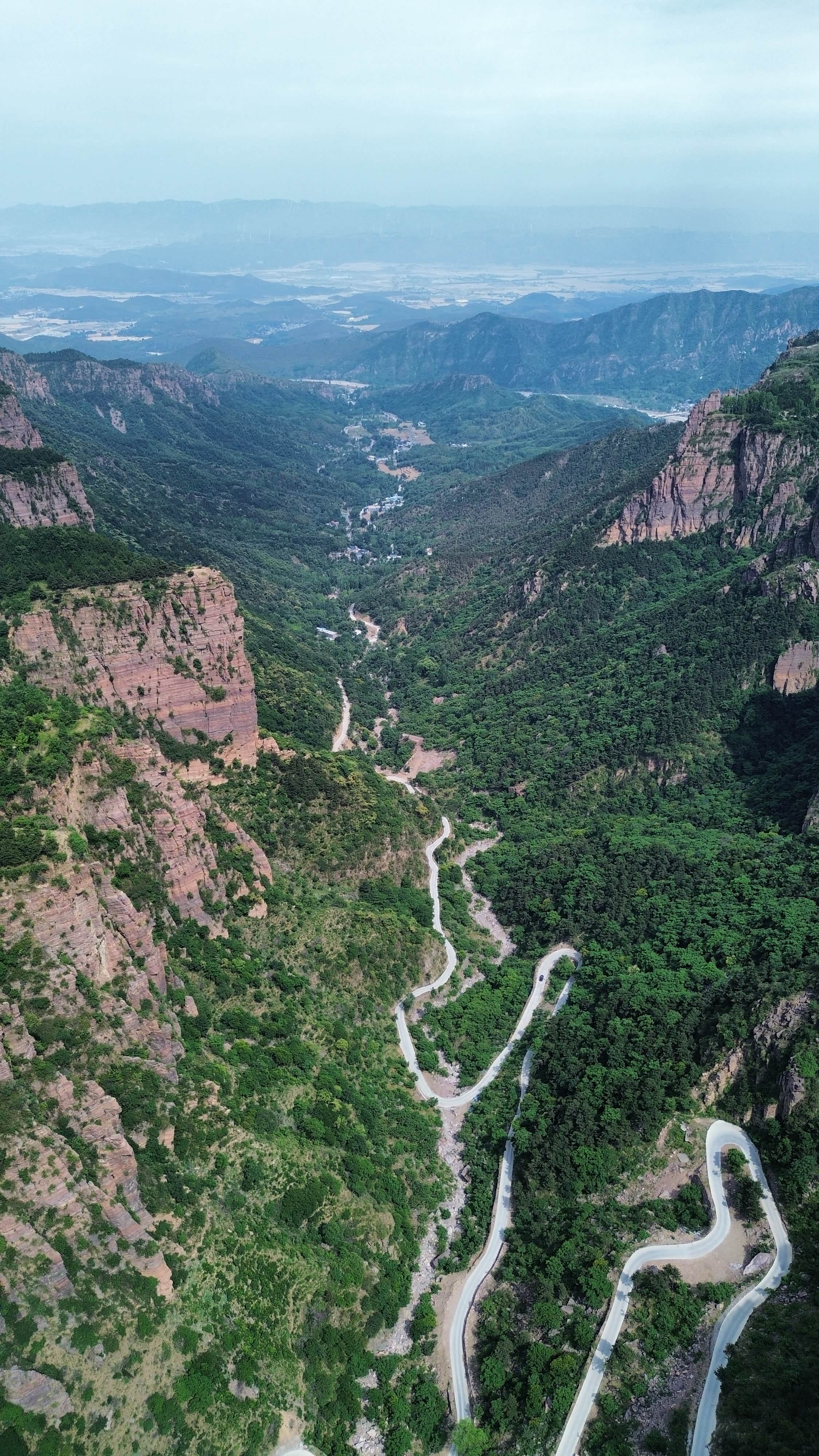 眺望来时的路,顺着山沟而上~