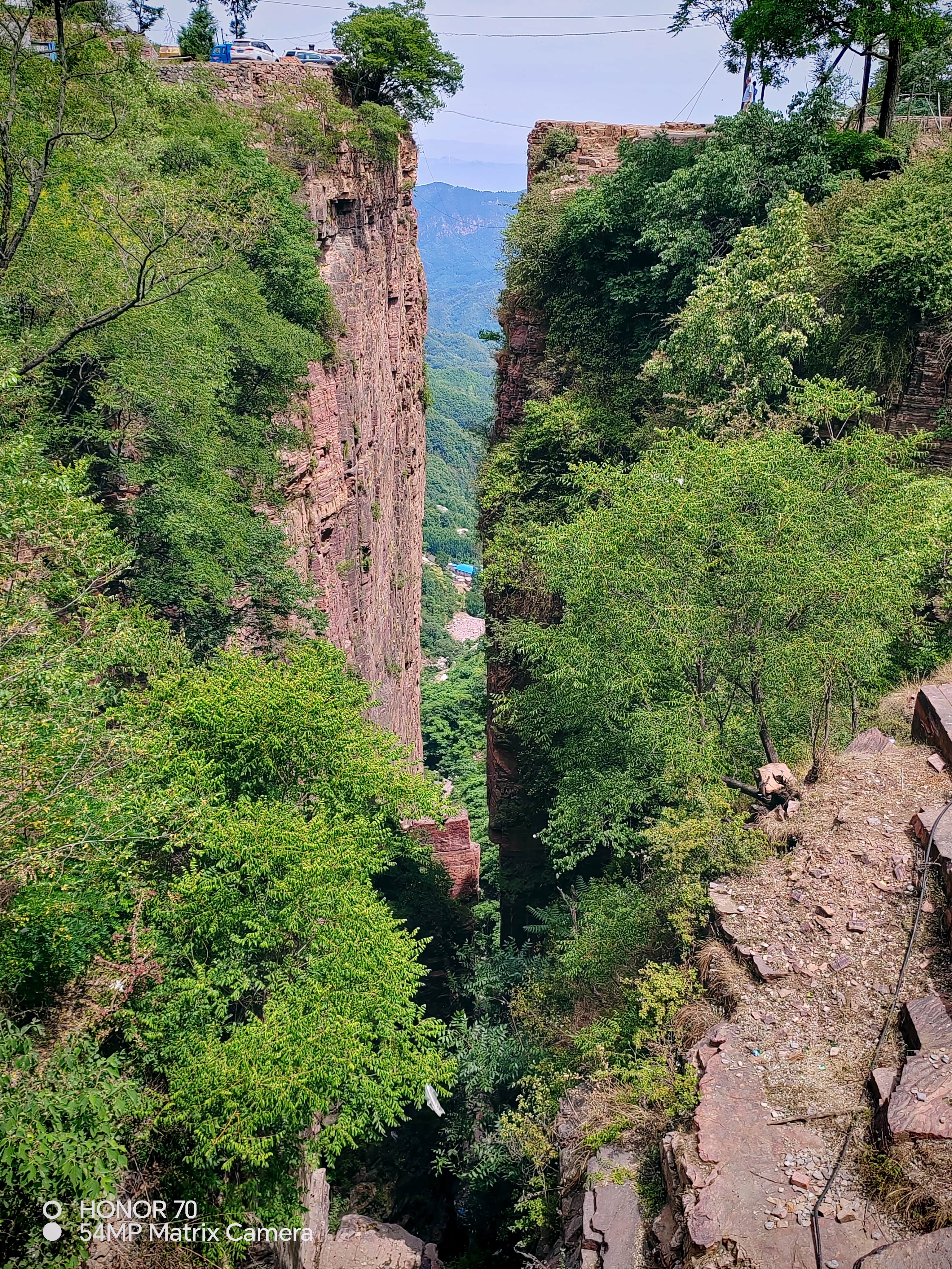 ,这次还到了更里面的上封邱一线天,两公里临崖一车宽的土路,很有西藏甲应村路的范儿,但这可是90度垂直悬崖,甲应村的路一般还都是5/60度山坡上的。路窄坡陡弯急的,就怕会车,紧张的快速通过,没有留下影像。