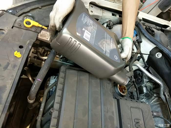 前两天车出问题跑4S店换了一个小零件,顺便检查了机油师傅说偏低了,想想这个全合成机油才战3900公里,又被带入了机油坑,还是换了吧,上图