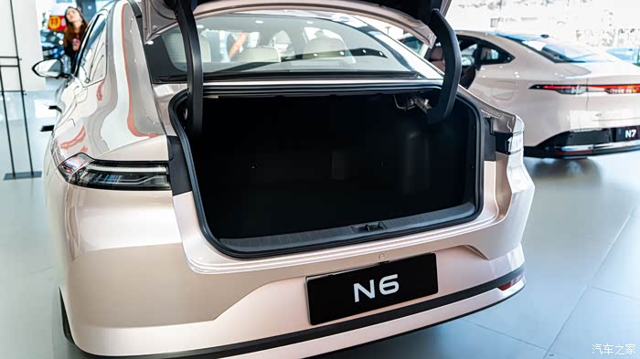 后排更夸张,我让销售把副驾调得挺靠后,再坐进后排,腿还有两拳多距离,中间地板隆起不高,坐三个人也不挤——之前陪朋友看某款同级插混车,后排中间得蜷着腿,N6 这点确实做得好。