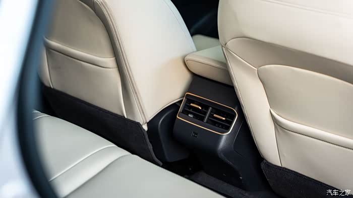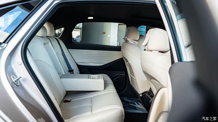 销售说后排是专门研发的 “零压云毯大沙发”,我特意坐了下,软乎乎的但不塌,腰部支撑很到位,像家里的沙发一样——之前试过多款插混车,后排要么硬邦邦要么太短,这台确实能感觉到下了功夫。而且还有后排出风口和充电口,点赞!