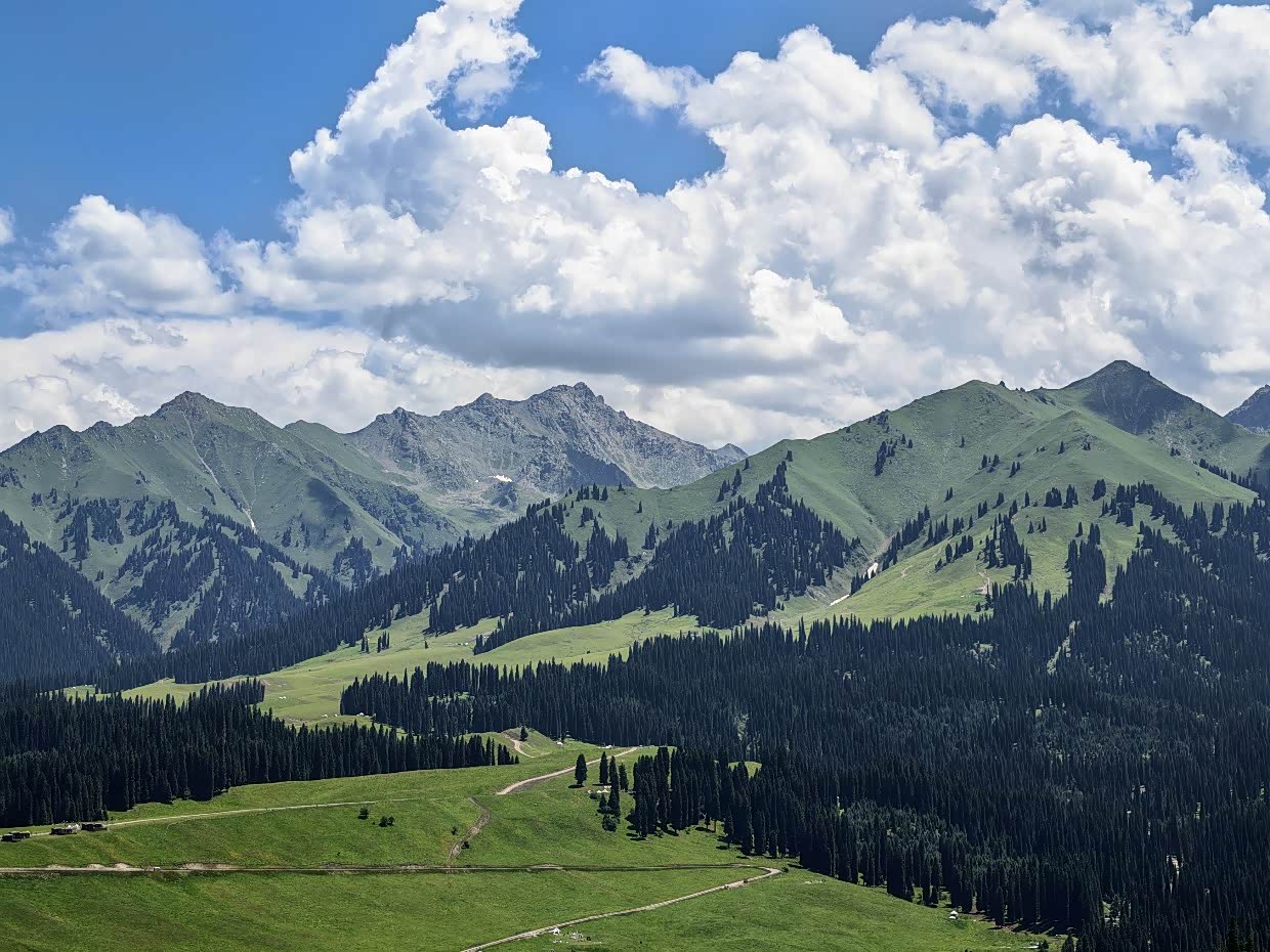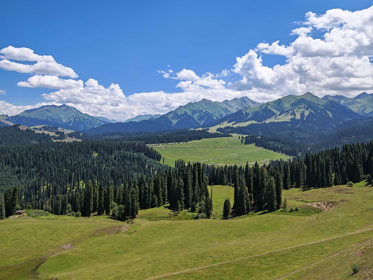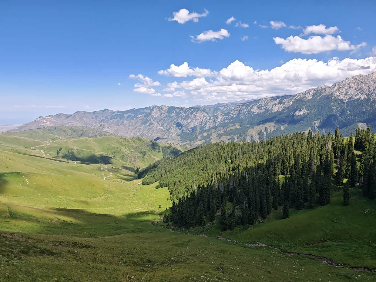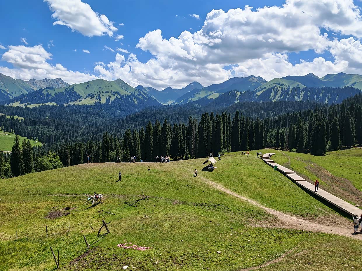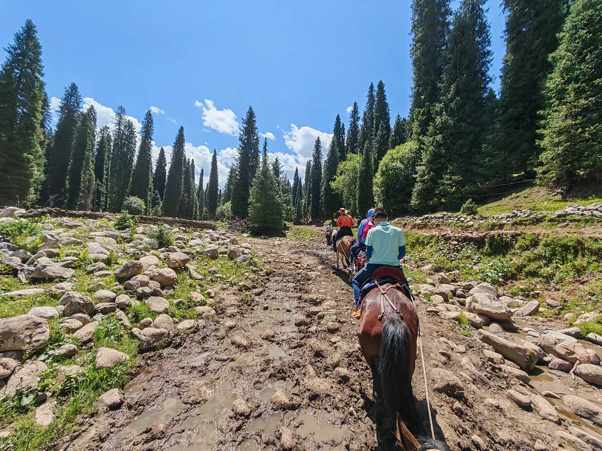 抵达库尔德宁,库尔德宁在收费景区里让我印象一般,除了齐梦德观景台我觉着景色可以以外,其它在新疆自驾的过程中完全可以忽略,什么十里画廊,太一般了,我带着孩子骑着马去观景台,体验还可以,满足了孩子骑马的愿望,现在想起来还是应该去“琼库什台”更能让孩子满意,好在齐梦德观景台的云杉、草甸及山峰的风景让人能够平复一下。