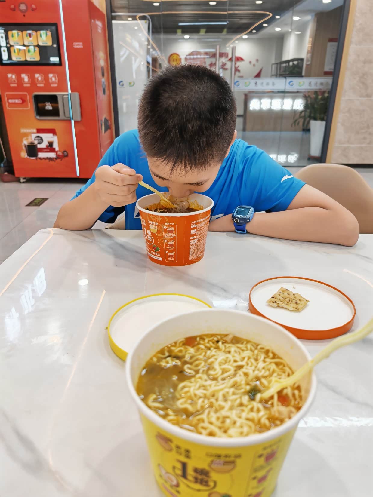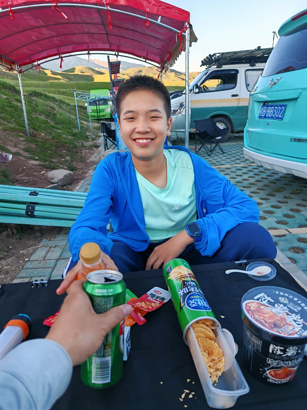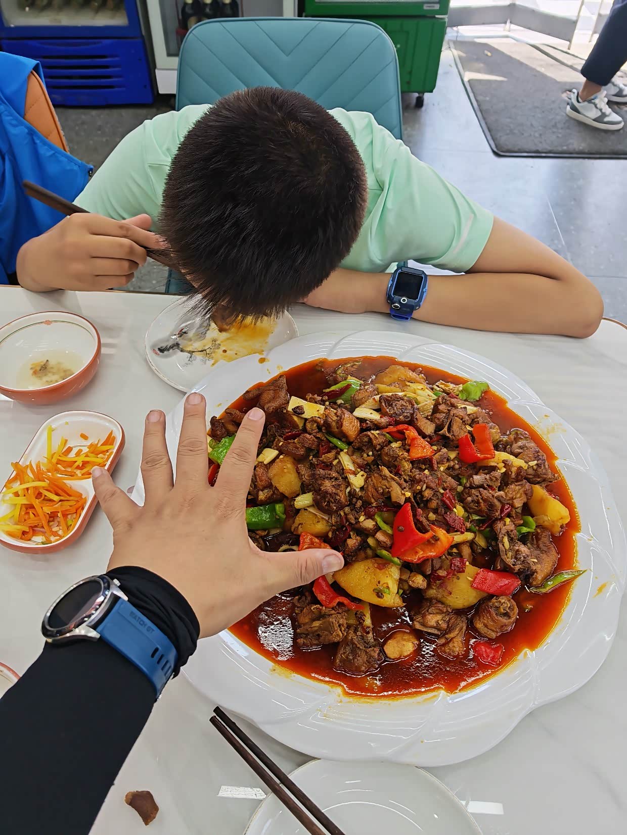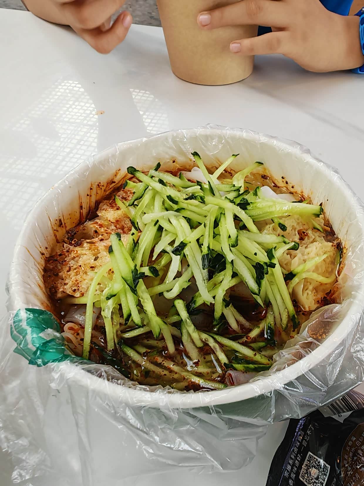 服务区孩子吃了一碗凉皮,一份炒酸奶,继续赶路
