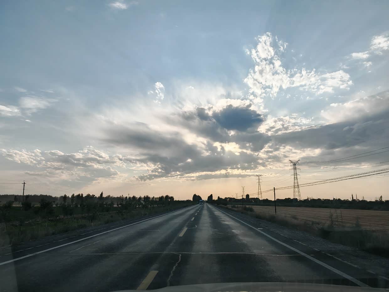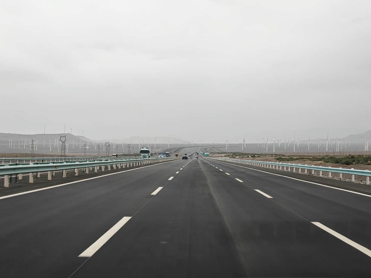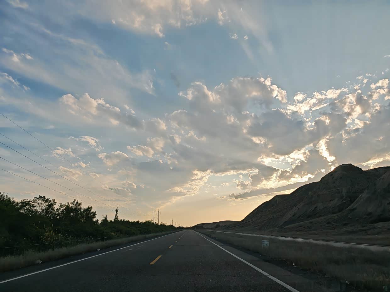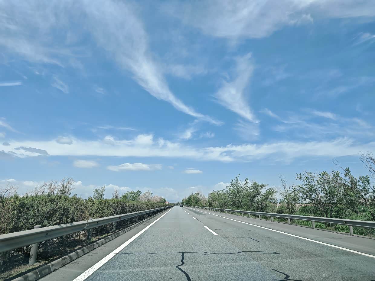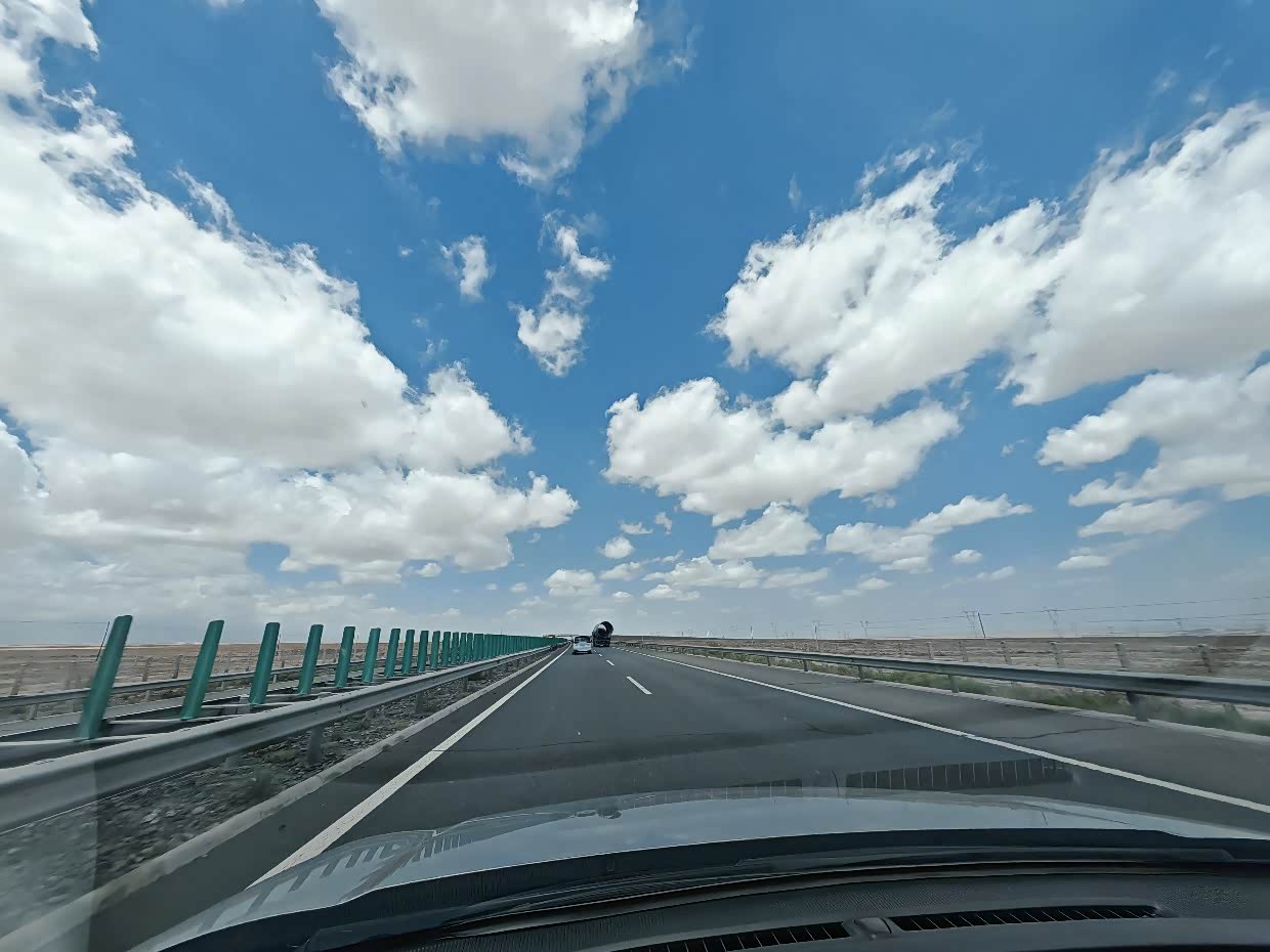 在这里发生了意外,一路上大疆无人机我都没时间放飞,看到瓜州这蓝天白云,想拍个素材,谁知道升空到35米直接失控炸机了,无人机就像着了魔似的斜着撞到了地面,直接摔成了零件,好在瓜州停车区没啥人,要不不可想象,我拿着摔成零件的无人机,在停车区走了一圈,没有看到禁飞的标识,也没有看到有干扰设备,大疆也没有把这块设为禁飞区,莫名其妙的就炸机了,让我一度到了崩溃的边缘,为了新疆的这趟旅行,我专门等到去年10月的AIR3S发布,还新换了手机,这下,最期待的进疆航拍希望破灭,和大疆售后联系了很久,找解决办法,但是每个方案都不理想,刚开始我也不理解,后来缓过劲,也想通了,既然出来了,不想这些不高兴的,调整好心态往下走。