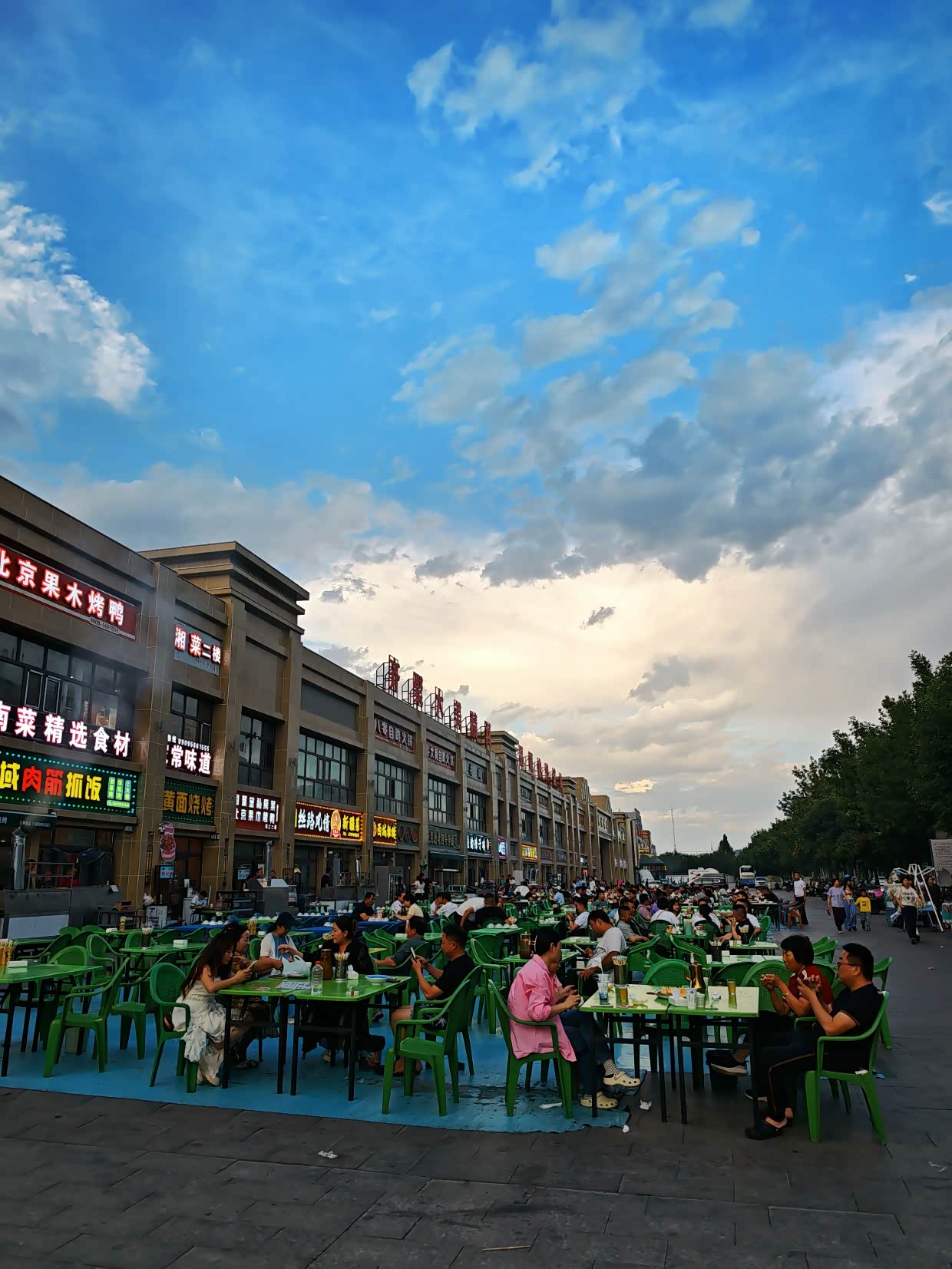 精河县距离赛里木湖很近,在这里落脚很合适,精河县晚上22:30天才黑,这是晚上20点30的天空,吃饭的人陆陆续续才来