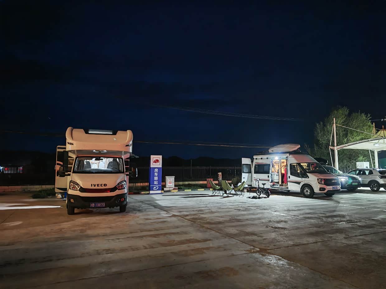 这个服务区专门化了一片露营地,用水用电很方便,扫码就行,在这过夜的车辆还不少