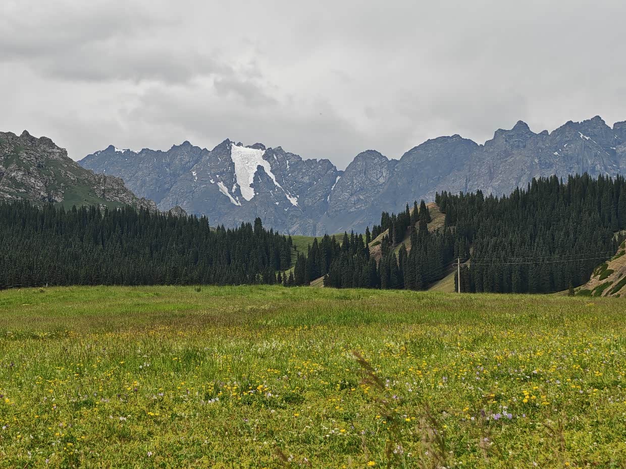 一路有高山草甸、雪峰、杉林、戈壁花海、挂壁公路及昭苏草原花海