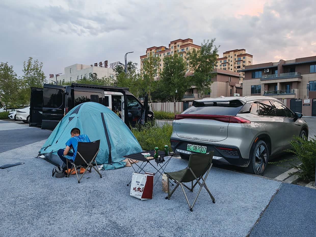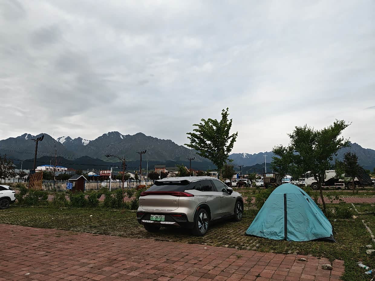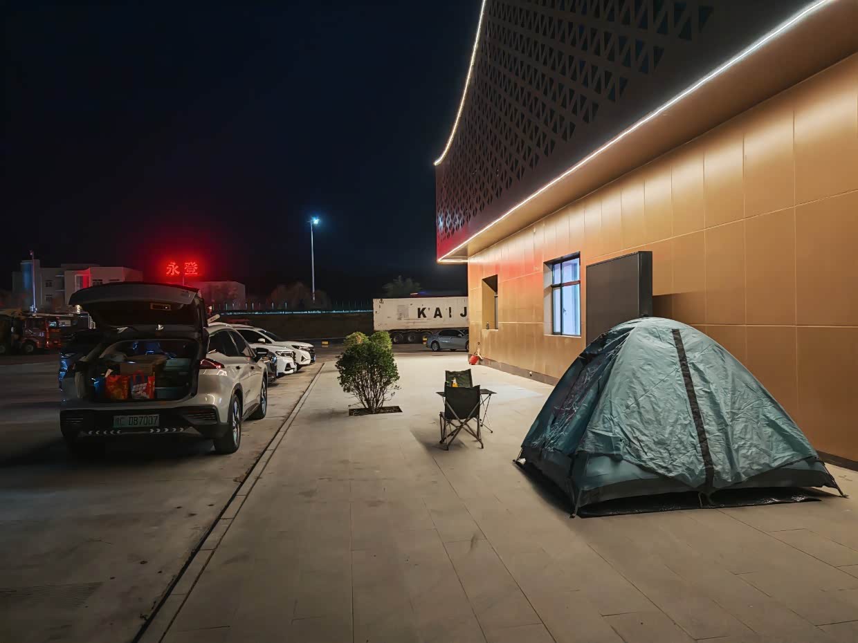 我可能和敦煌无缘,19年到敦煌莫高窟没约上,鸣沙山也人满了,今年我又来了,提前三天约敦煌莫高窟的门票都已经排到下周去了,鸣沙山倒是顺利约上了,谁知道,几乎不下雨的敦煌,来了一场大暴雨,外加沙尘暴和大风,我直接放弃了,直奔一百多公里外瓜州的几个沿路雕塑,大地之子和汉武帝,看完准备赶路往前跑跑,因为有沙尘暴,怕被吹个灰头土脸,后来到了赤金服务区,这个服务区是新建的,地方大,设施全而且新,充电更方便,而且停车位都有遮阳棚,即便下雨也不怕,充着电支着帐篷,顺便买了炒拉条,味道不错,洗漱完电刚好冲到90%,然后就睡了,早上七点起来要赶路去兰州,900多公里,迅速充电、收纳帐篷、吃饭、洗漱,一点时间没耽误,所有干完电充满了,直接一口气跑了424公里,补了次电就到兰州了。