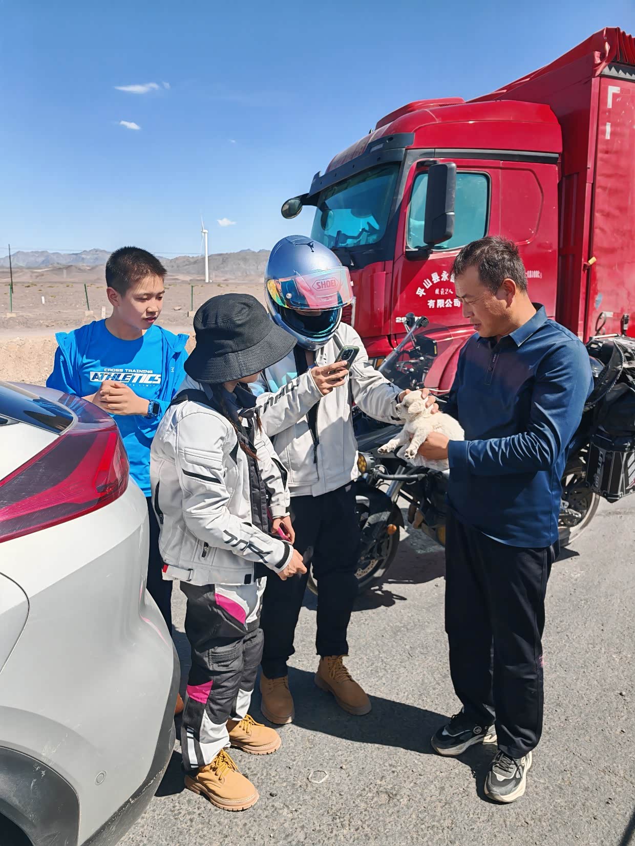 这对摩友也没法长久的把这只小狗带上去,就一路问,谁喜欢,能否收养,还是真有一位甘肃的大哥想养