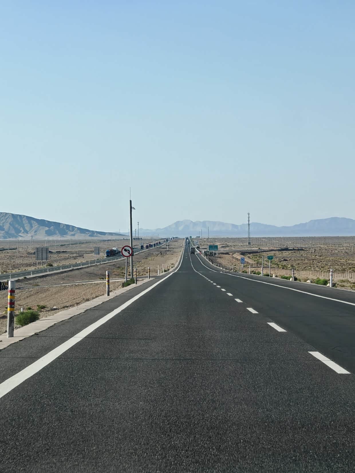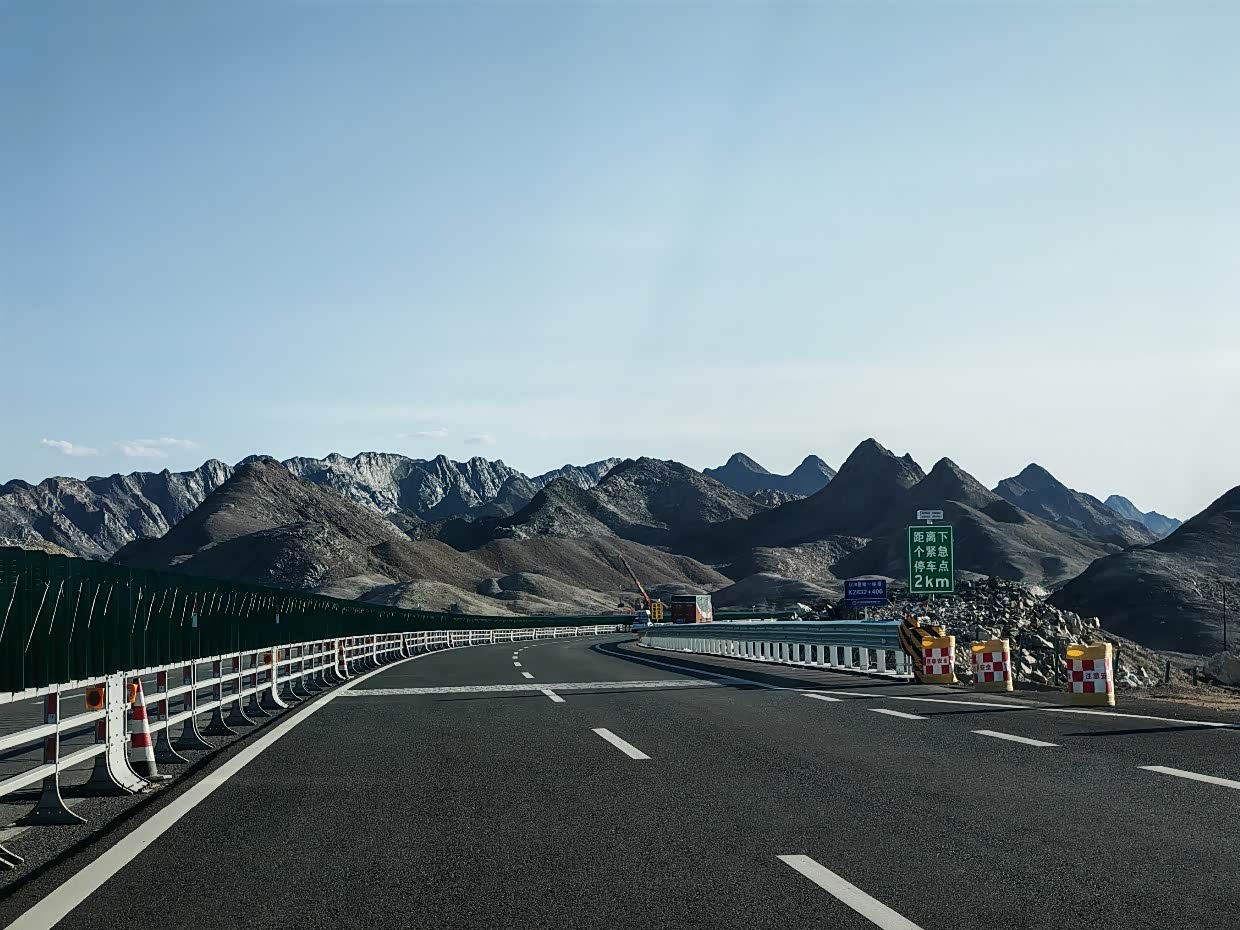 这是哈密去往乌鲁木齐的的路上,高速一段好一段不好,断断续续修着路