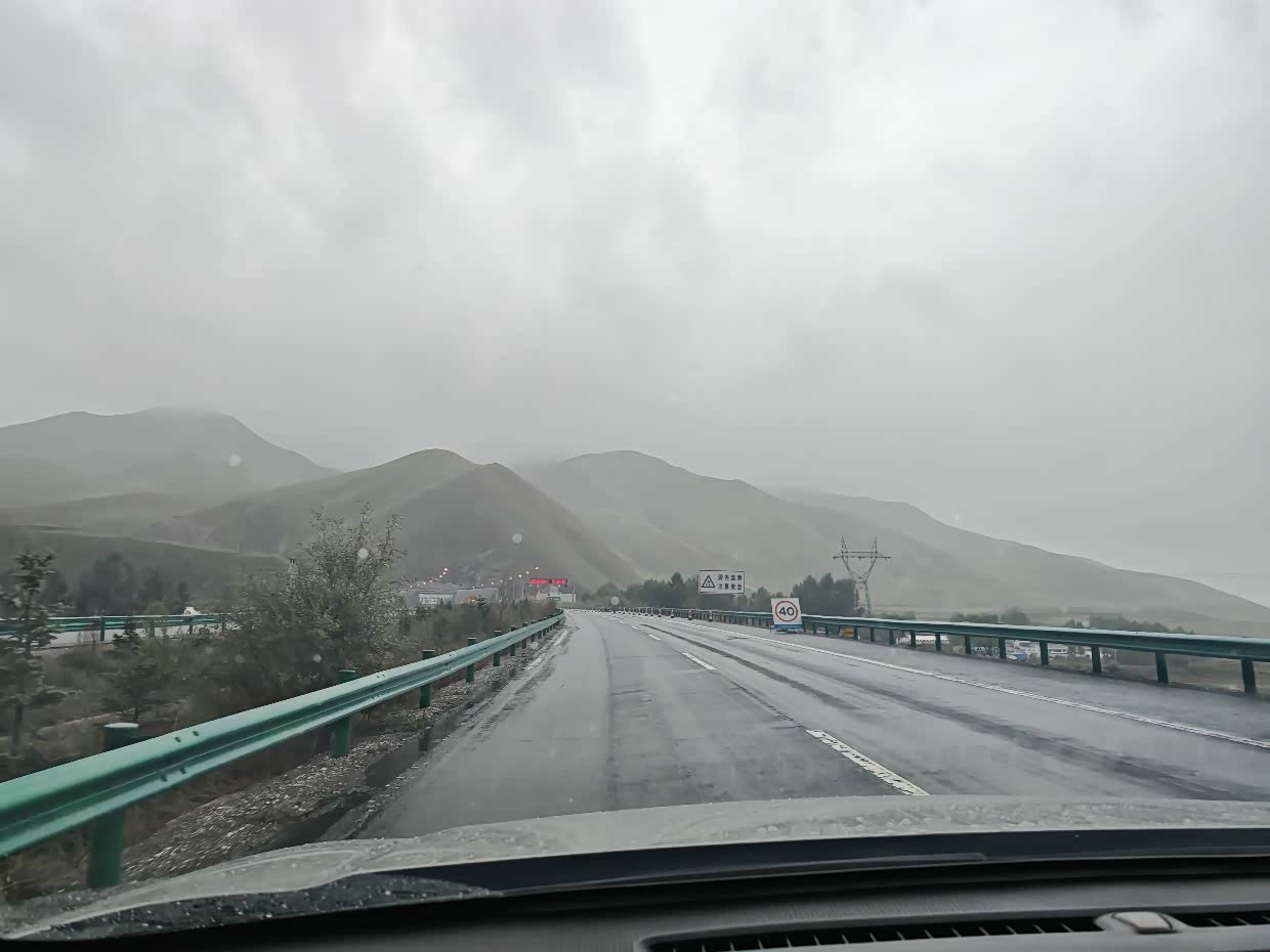 进入河西走廊,开始下雨,气温突降到9摄氏度,暖风都开开了