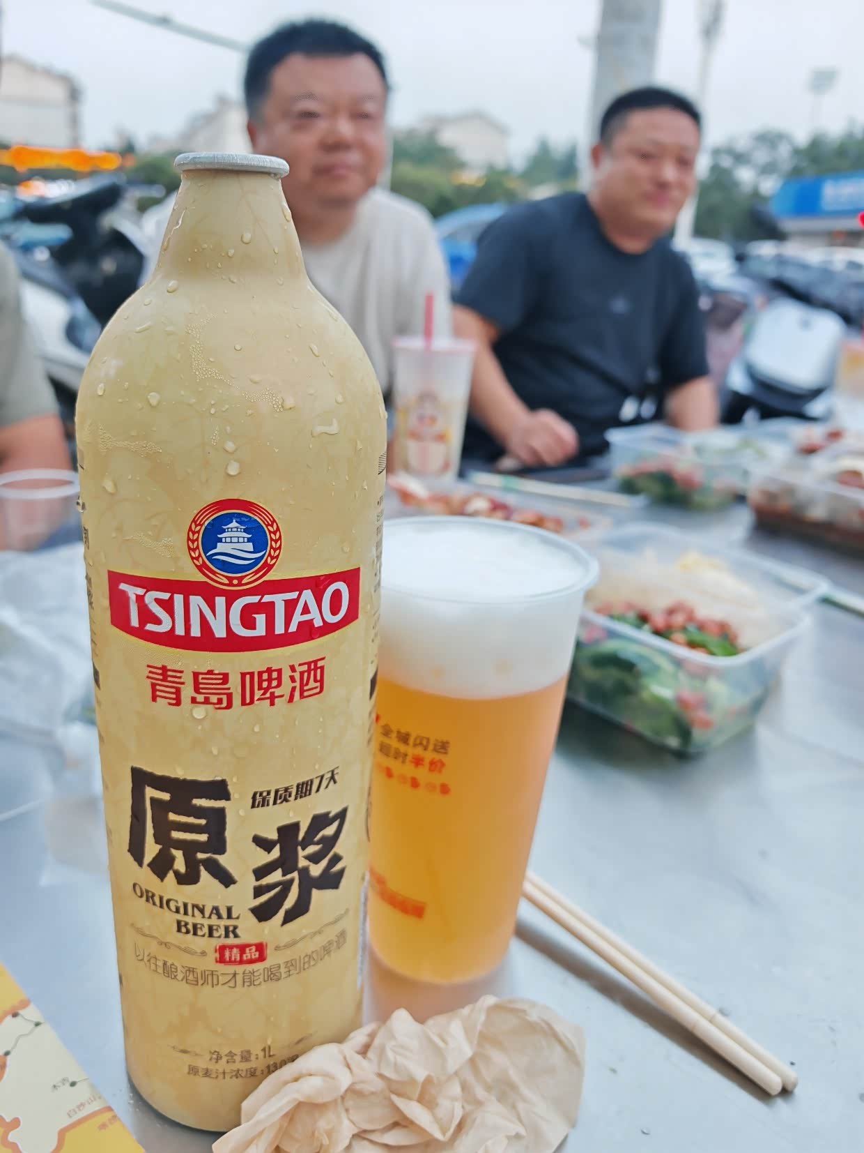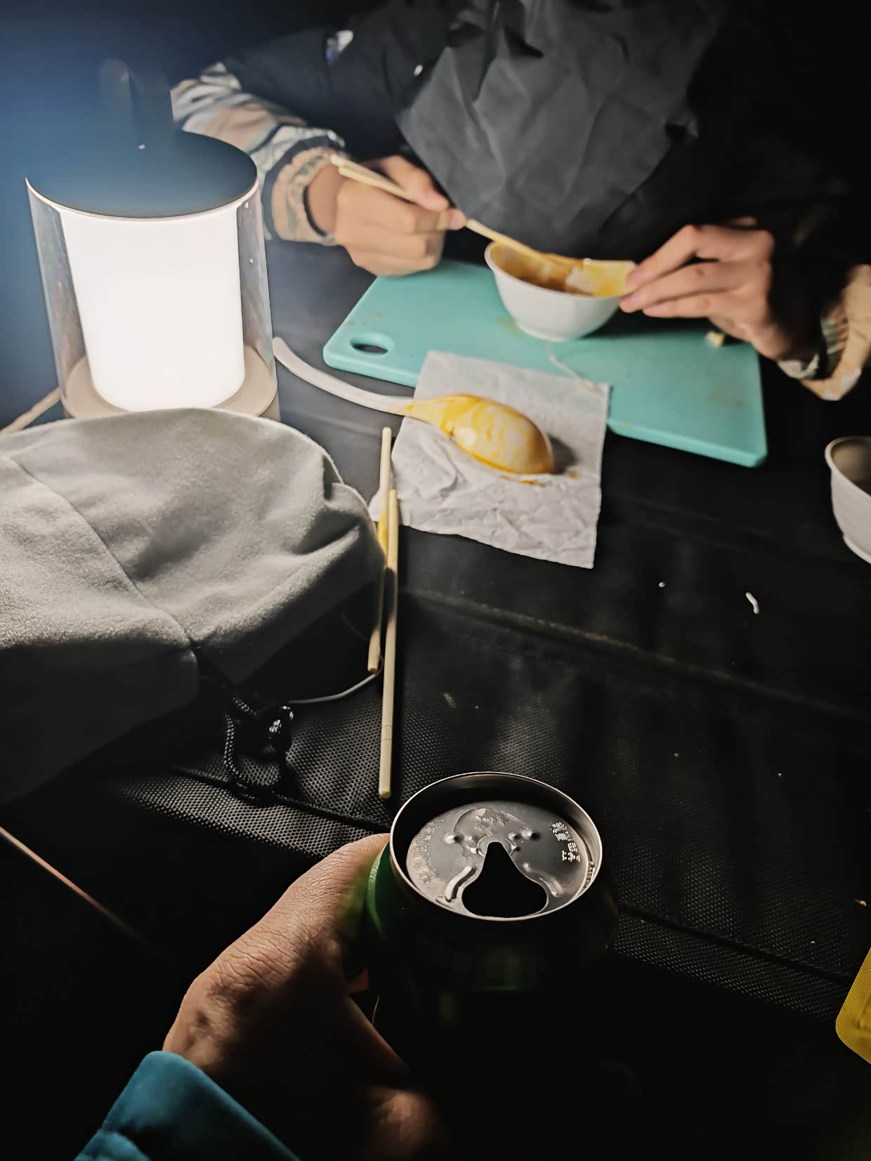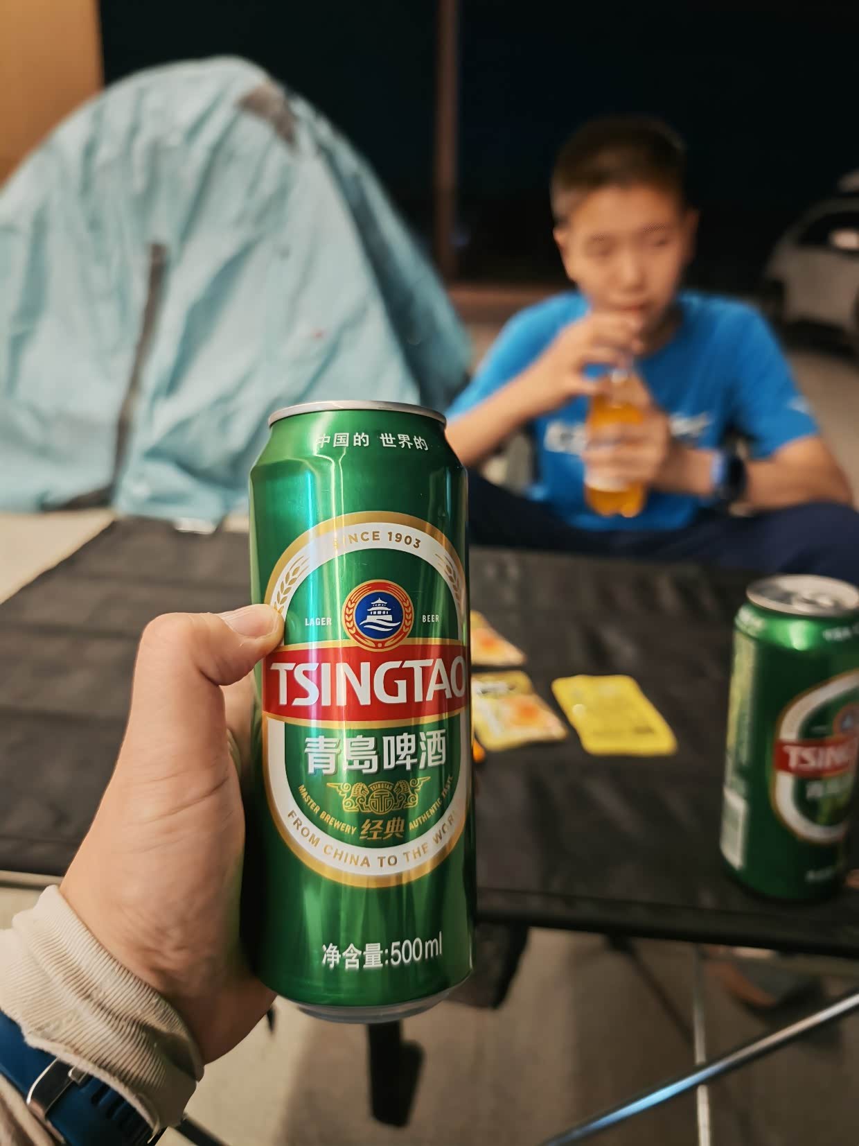 搭好帐篷,吃完饭,喝点啤酒解解乏。