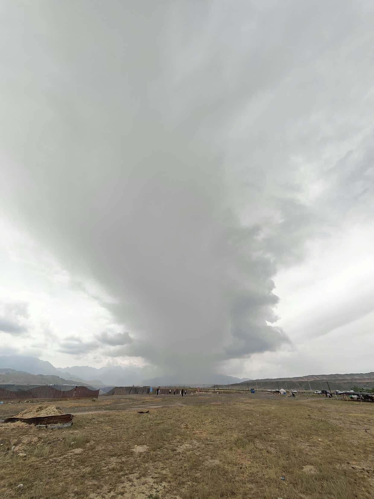 在这里露营遇到了降雨,好在帐篷能抵御这样的天气,所以说,来新疆旅游打算露营的帐篷一定要选好,刮风下雨帐篷的区别一下子就出来了。
