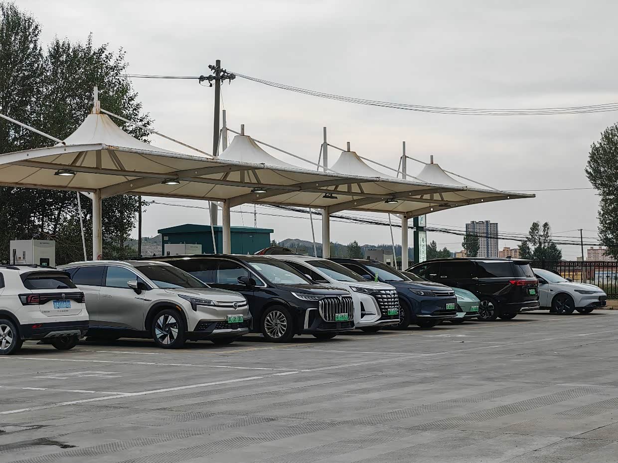 这是宁夏的一个服务区,具体忘了,中午在这里充的电吃的饭,吃完歇一会也就差不多到550的续航了