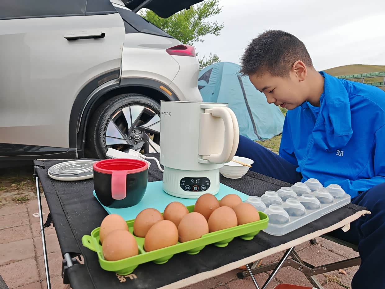 早上起来用便携式煮锅煮方便面,加蛋加蛋,再热一包奶,营养又美味