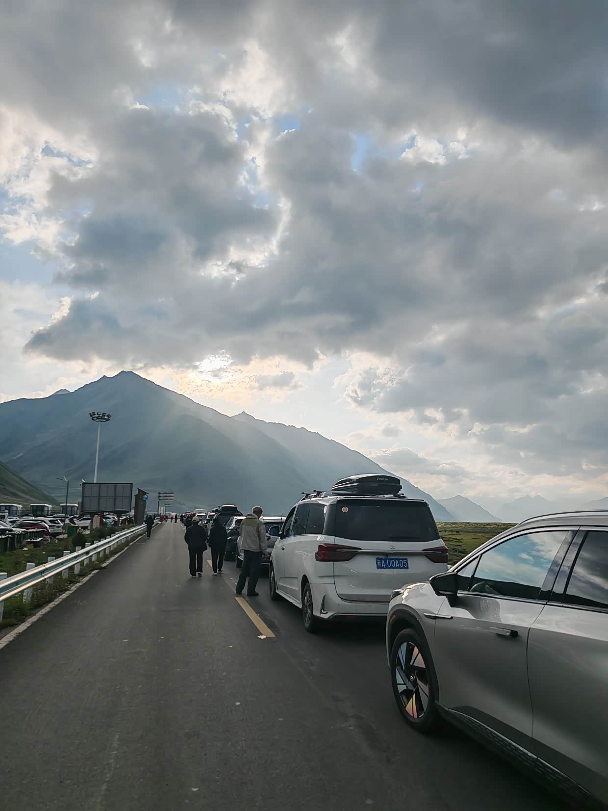 一路赶就为了挤出时间去“喀纳斯”,看预报中雨,我这里距离喀纳斯将近600公里,一去一回就是两天,我是一天都等不了,因为还要去兰州看我姨,回老家看看舅妈还得办其他事情,时间对我来说很紧张,今天早上我们7点多就出发了,独库公路10点放行,我们先去排着队,然后吃个早饭,洗漱洗漱
