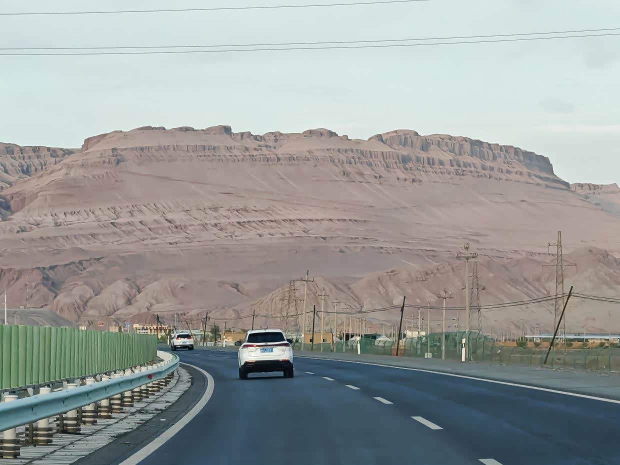 晚上我们住到了哈密,由于今天跑了1100多公里,路上还有个小意外,所以折腾的比较晚,在酒店躺下就睡了,第二天吃完早饭就开始赶路了,今天要到鹿角湾,大概900公里。