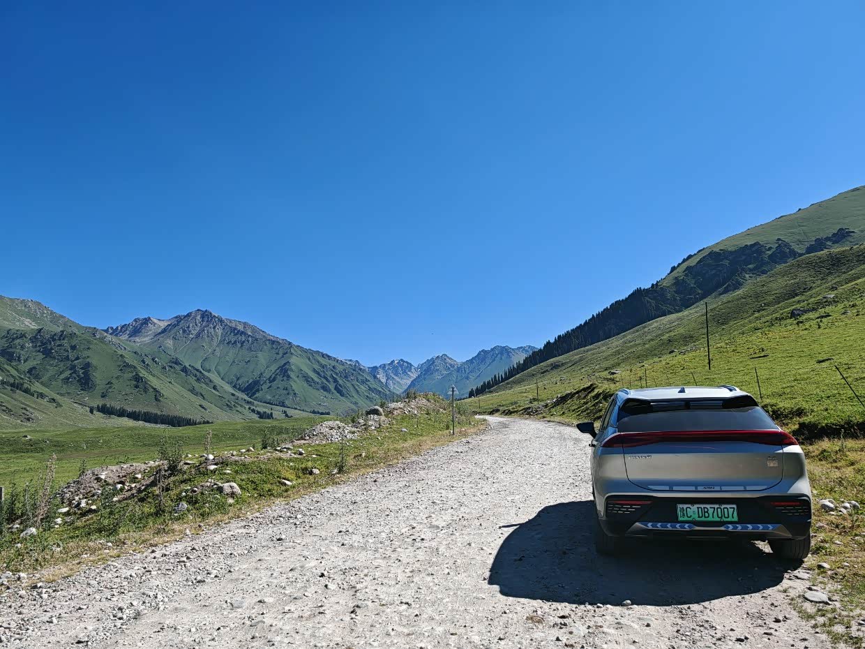 伊昭公路非常值得一去,从伊宁到邵苏,翻过山就有服务区,能充电,完全没有续航焦虑,去新疆电车切记,有上山就有下山,出发前续航只要是400左右放开跑就行,沿途充电很方便,续航焦虑我反正是没有,剩余续航只有一次低于300,