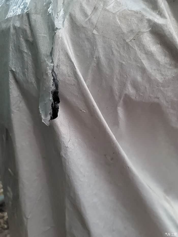 这种铝膜的车衣经不起雨水侵蚀和阳光暴晒,出现了裂缝。
