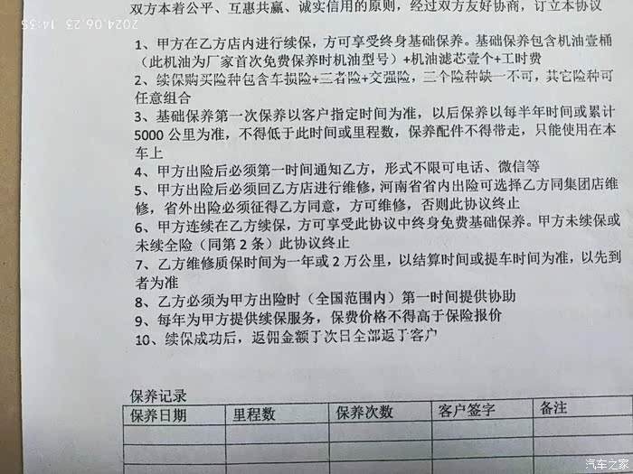 和4S谈下了店内购买保险送免费基础保养