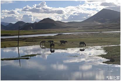 路上,天慢慢放亮,车行在离天空最近的地方,看着路上的羊群、仰望着蓝天白云、偶尔可见的马匹,在这里仿佛时间都变慢了,一切那么悠然自得,天地融为一体。心灵愈发更加激动不已,为了亲眼见到珠峰,这一路来的辛苦和艰难,都仿佛成为不值一提的时间碎片,而见到了她,才知道这拗着的意义究竟有多大。