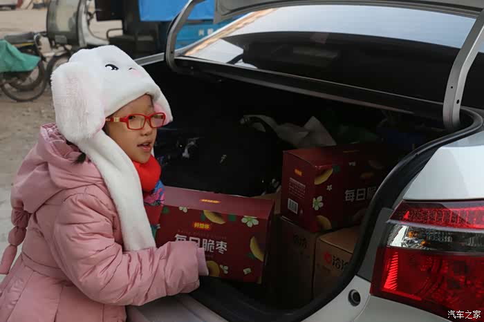 检查好了车况,回家开始装东西,过了年女儿就8周岁了,越来越中用!颇有我小时候的风采!妈妈还在单位值班,所以女儿便帮我整理带回家的年货。足足准备了给两家老人拜年的年货,放在后备厢里居然还有空余,难不成我的年货备少了?