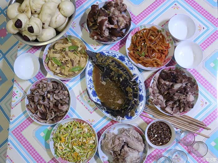热气腾腾的大块肉一出锅,香气就弥漫在整个屋子,闻的我哈喇子都快出来了,这才是真正家宴所特有的味道!