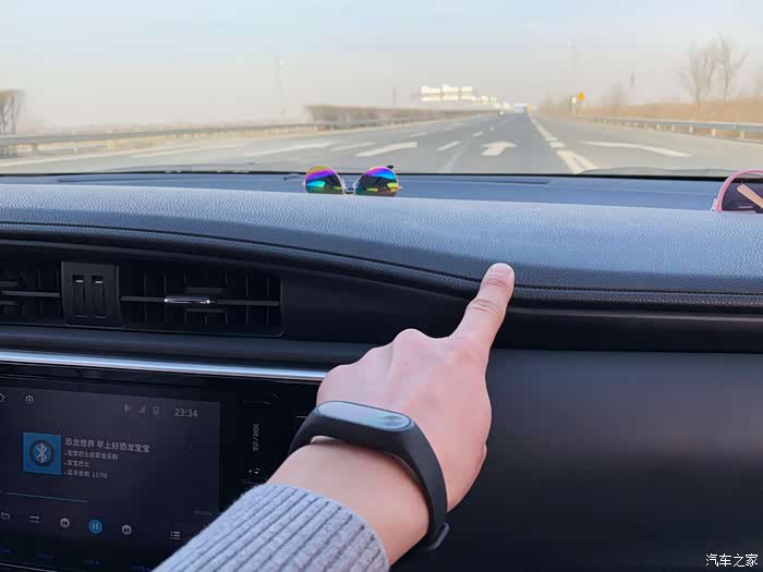 打开空调,暖和多了,超喜欢这个卡罗拉旋钮的出风口,阻尼手感很好,1.2T的发动机带空调也没什么压力。