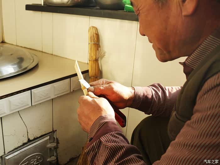 好笑的是家里找不到了毛笔,不过这也难不到造车大爷,老爸一边自嘲说没有工具造车我都能整,何况一支笔乎!老在灶堂边找到一根秸秆,几刀下去,属于硬毛的毛笔就搞定了。