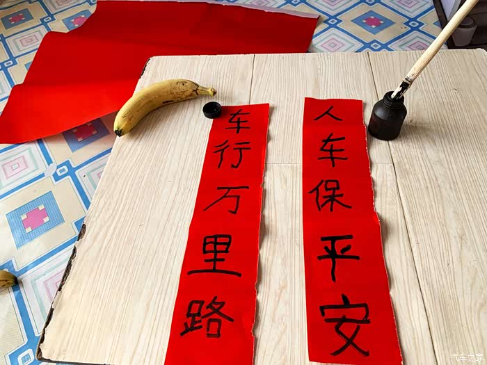 看看这对联写的,有模有样吧,最佩服的就是造车大爷的创意毛笔!简直太霸道了!(毛笔还真不一定能写好)