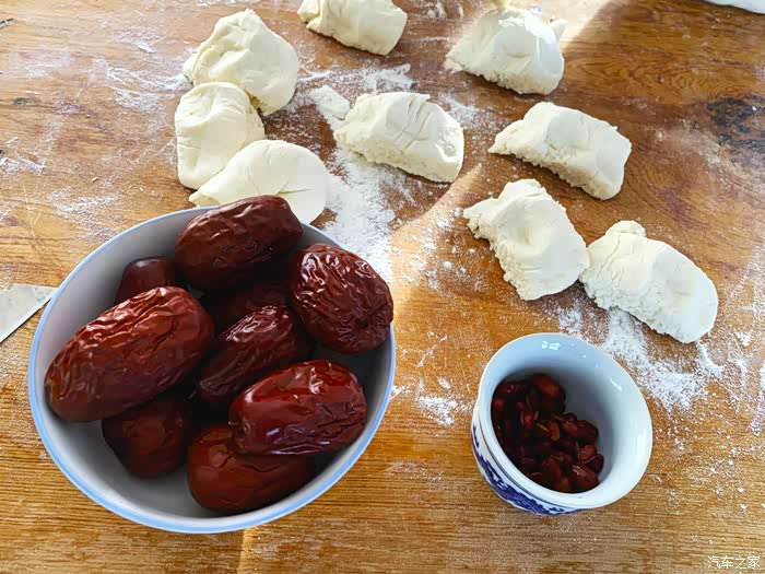 如果说发面老妈是在行的,要是做花样的馍馍,还得造车大爷出手,大爷习惯用及其普通的食材来装点花馍。