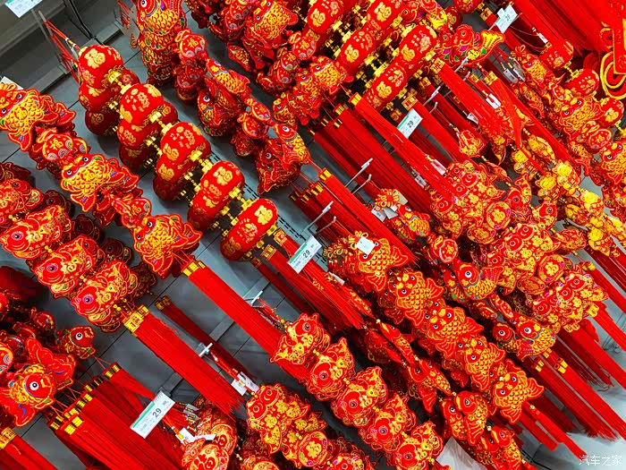 超市的节日气氛更加浓烈,一串串的挂件,红彤彤,真的是年来啦!