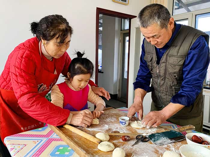 全家人一起忙年最开心的时候了,老爸一边和孙女打着嘴仗,一边揉着面。