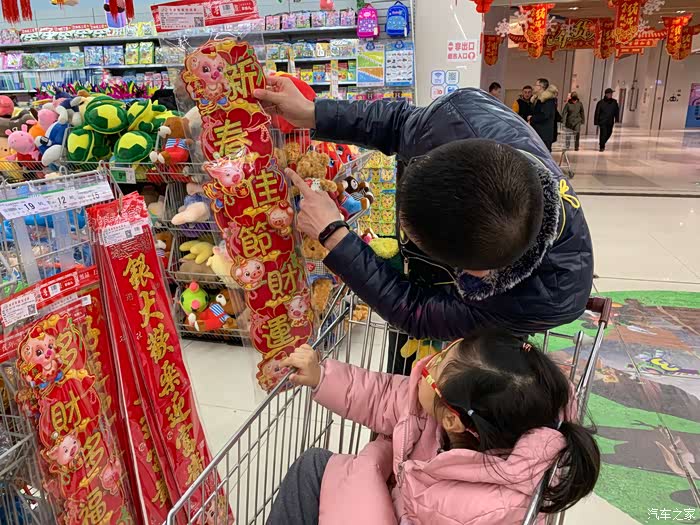 刚进超市还好,我们一边念着对联认着汉字,一边教孩子回家怎么和爷爷奶奶姥姥姥爷要压岁钱,心想这带孩子也没有那么难嘛!