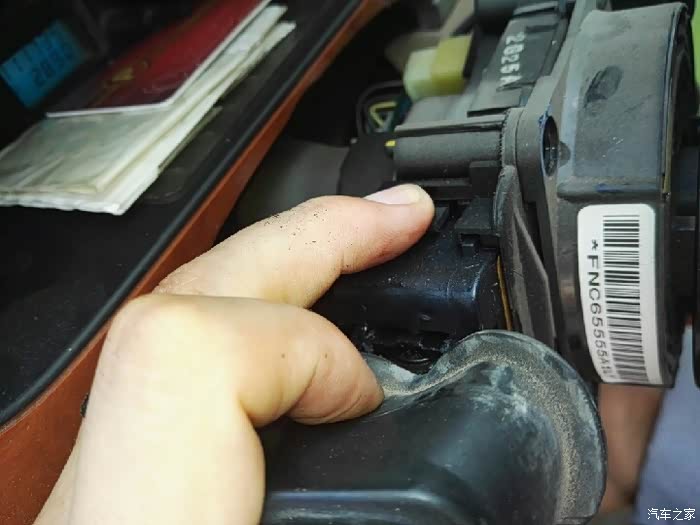 拆掉两个固定螺丝还不能将大灯组合开关拆下,这里还有个卡子。