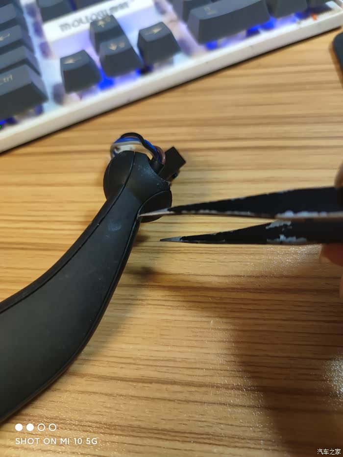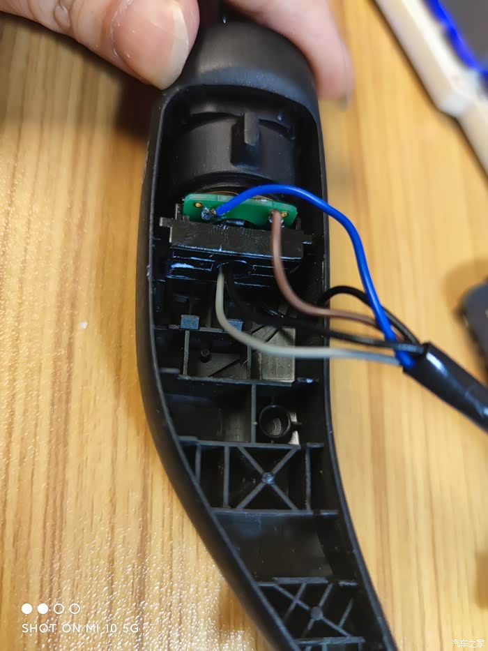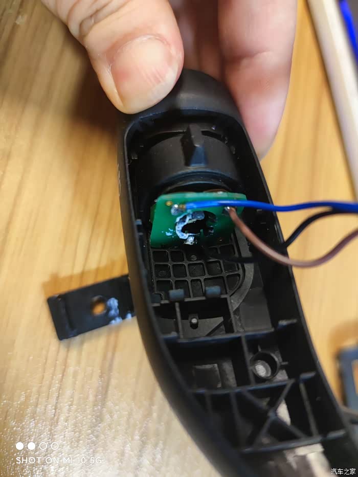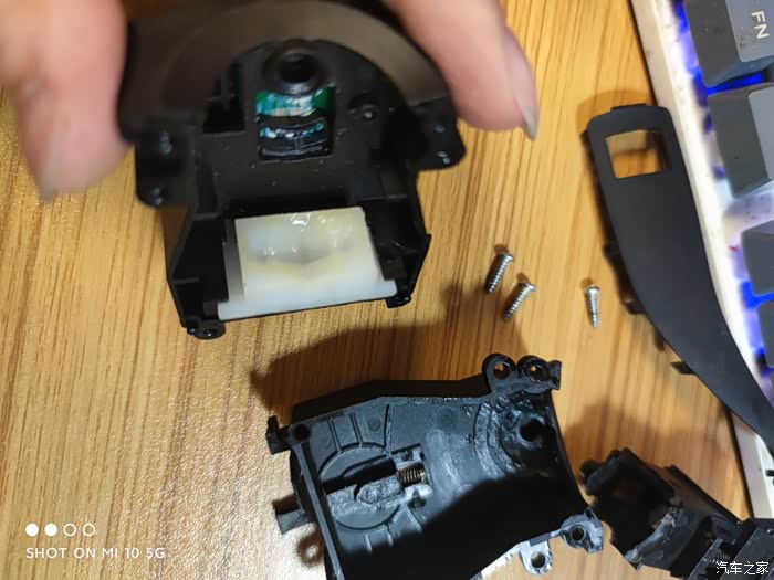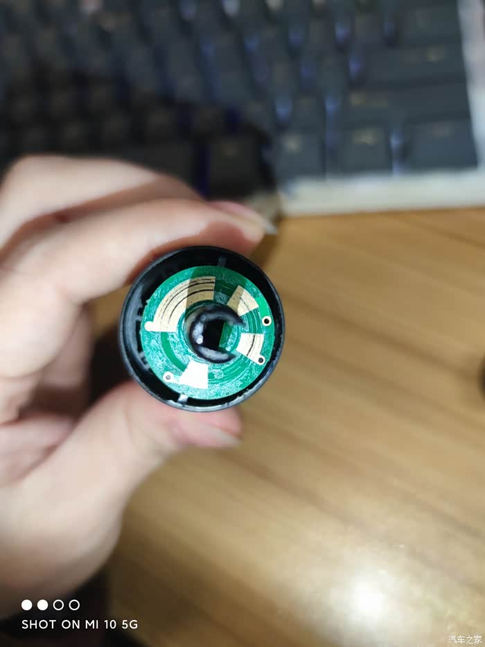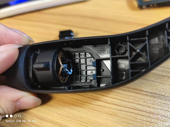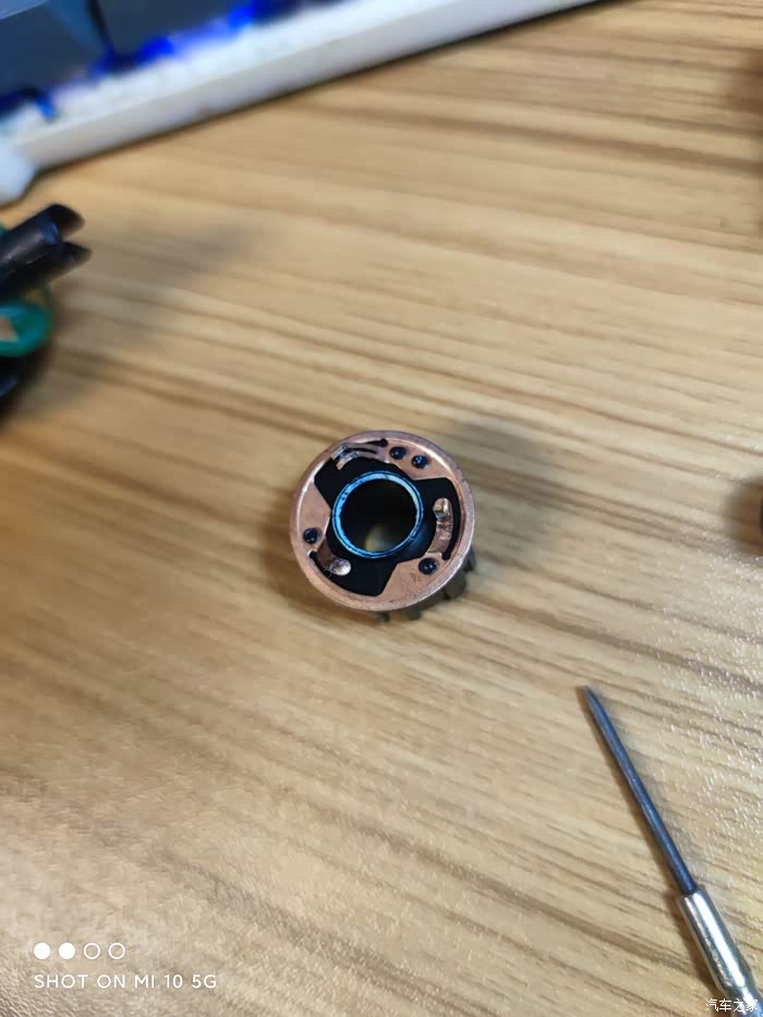 拿掉卡块之后,同样的,电路板有两个卡子扣在中心轴上,用镊子轻轻挑开,就可以拿下来了。