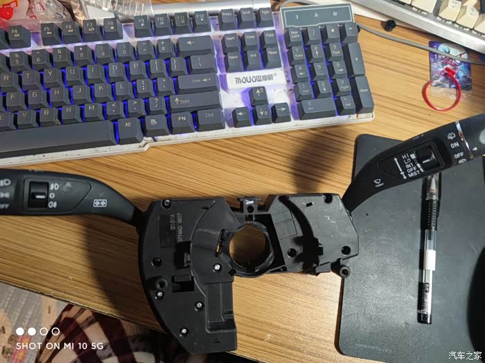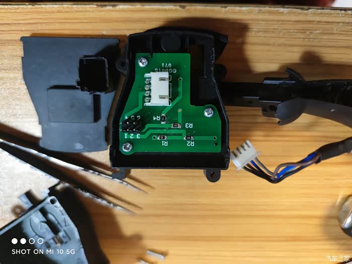 有条件车友可将大灯组合开关整体拆下带回屋里维修较为方便,如不想麻烦,也可在车上操作,流程一致。请忽略图中的编号,众泰系基本通用,个别经过调整电阻之后也可达到适配的目的,后面会讲到,请耐心往下阅读。