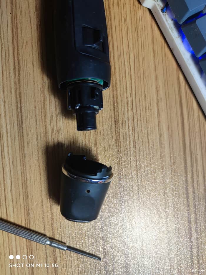 拔掉空心销之后,这个塑料帽就可以摘下来了,就能看到里面的结构。