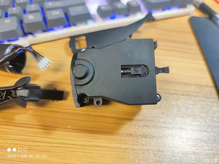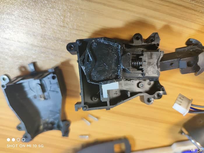 打开这边的盖子,上面黑色这部分就是转向灯复位的结构,可以轻轻取下。