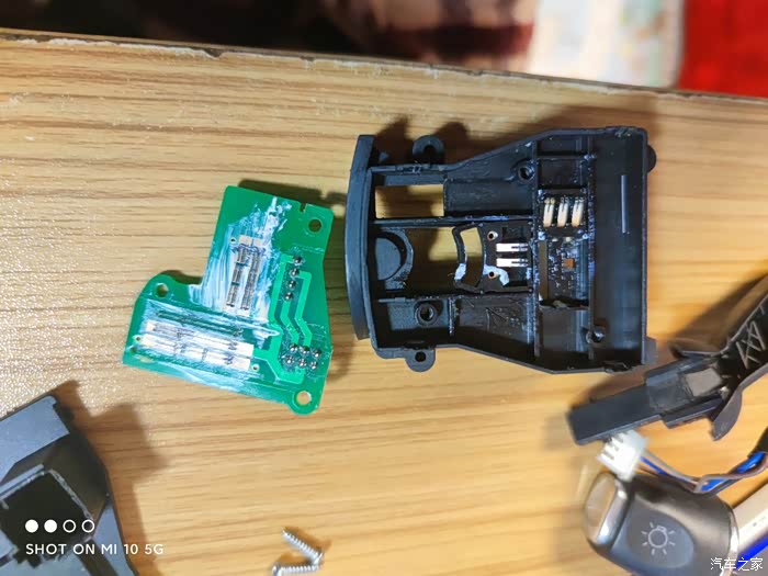 这边是对应的电路板,上面也有铜触点,一样的方式,检查有没有磨损,该打磨打磨,该加油加油。再强调一下新款的有5个触点,你的开关不一定跟本图一致,维修方法相同。