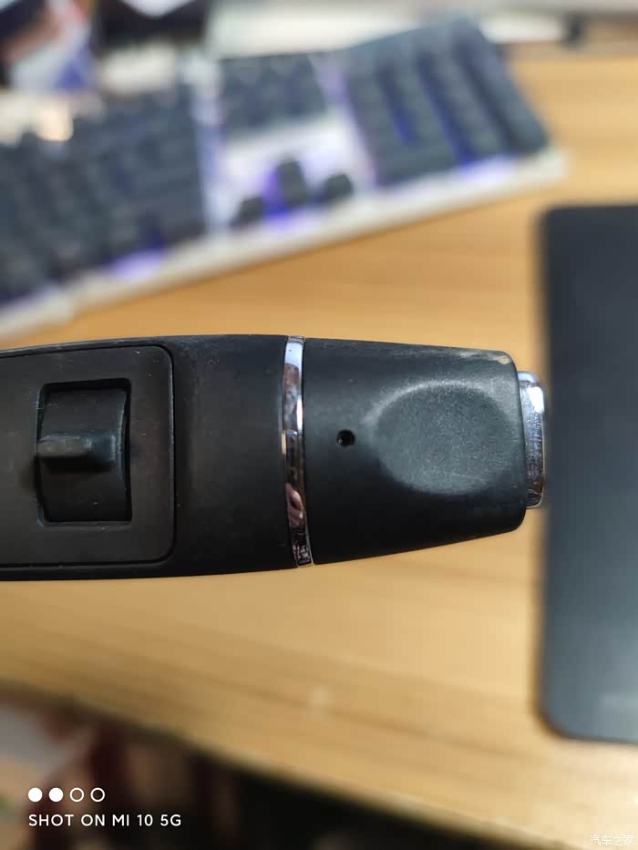 将开关翻过来,在背面可以看到一个小孔,孔内有一空心销,用铁皮卷制而成,在很多场合可以看到类似设计,比如本车的机械钥匙侧面。