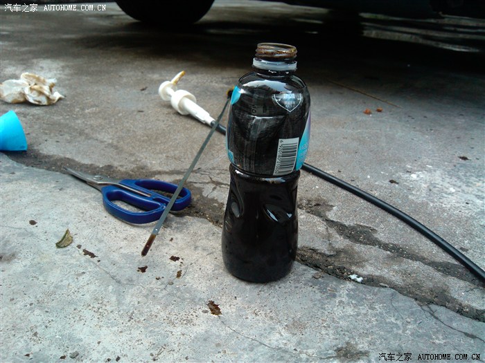 抽到接近一半矿泉水瓶,机油尺还是没怎么变化,老子再抽、、、