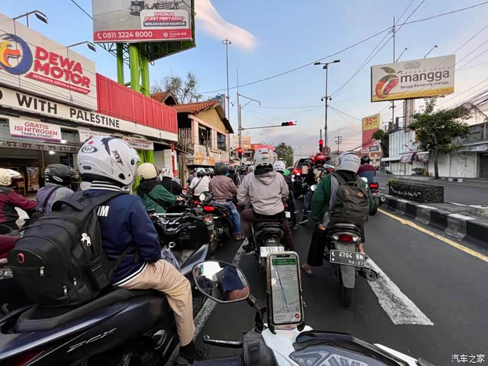 印尼人口众多,城市里骑行,每时每刻几百辆摩托车在前后左右