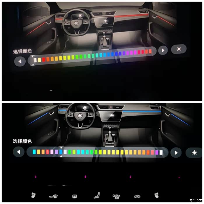 变道辅助警示灯镜片亮度调节+原车10色氛围灯改30色氛围灯,这个需要有5054软件,我是找大神远程操作的,刷完效果真的很赞,看镜片灯效果调节(一共5档亮度可以调节),10色氛围灯我原厂照片没有了,网上找的,后面30色是我刷完的效果