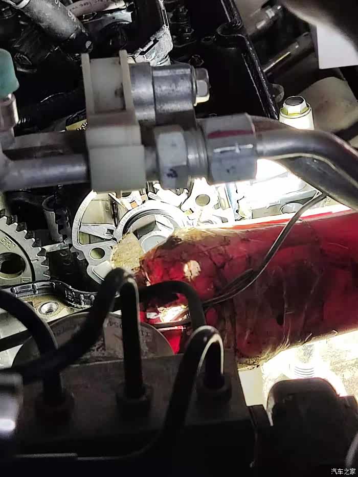 这个时候我已经没有耐心和他们巴拉巴拉了。车子上下班通勤需要使用,而且我当天正在上班,综合考虑后,我让老板直接打开看正时,已确定到底问题出在哪里。(上午老板已经在不拆的情况下把能排除的情况都排除了)于是我到老板店里看老板现场拆开。拆开后,我就裂了啊,兄弟们。我妥妥的中奖了。