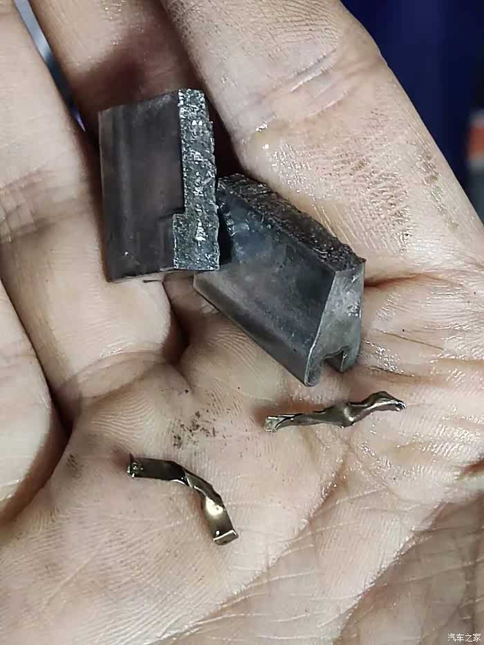 2片断裂,下面2个小的铁片是断裂的这两个部件的连接件好像。