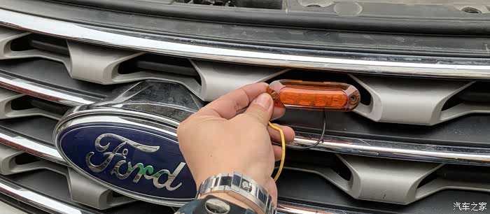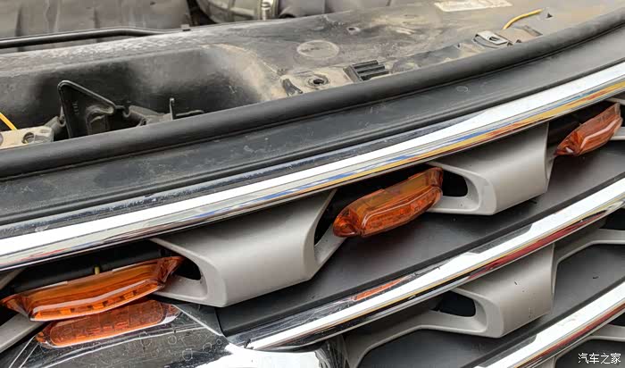 这种LED小黄灯的安装其实很简单,只需要把机盖下面,前杠上面的黑色塑料扣板拿掉,就可以安装了,不过需要用电钻在中网空隙的黑色塑料上打三个小孔,两边的小孔固定小灯,中间的小孔用来穿线。