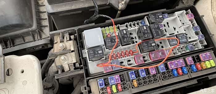 小灯的正极电源直接加装了一个保险片,负极直接与电瓶的负极连接,插在保险盒的预留位置,这个位置可以实现启动车辆小灯常亮。