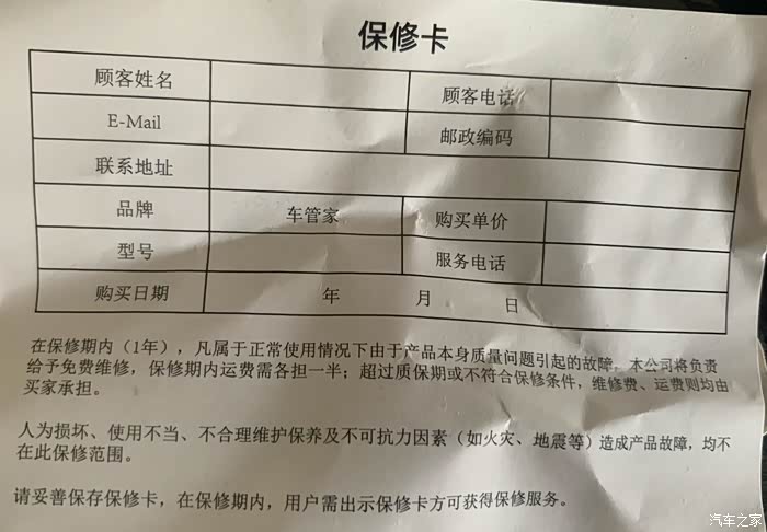 质保期:一年 产品里配了一张质保卡